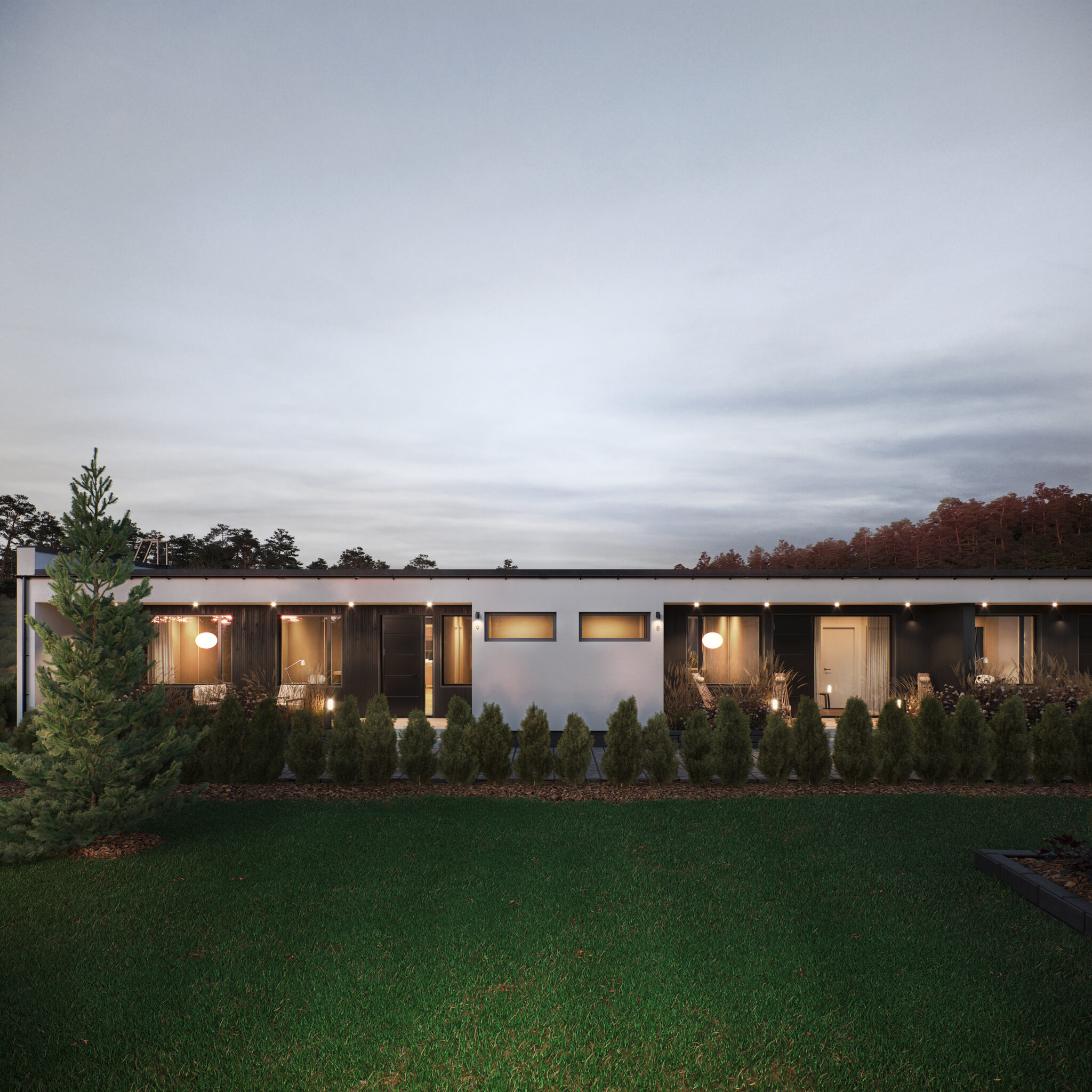 - Sisääntulopihat on asfaltoitu ja jokaista asuntoa kohden on varattu kaksi autopaikkaa – yksi autokatospaikka sekä yksi pistokkeella varusteltu pihapaikka. Etuterassin yhteydessä sijaitsevan lämpimän varaston lisäksi asuntoon kuuluu toinen varasto autokatoksessa.